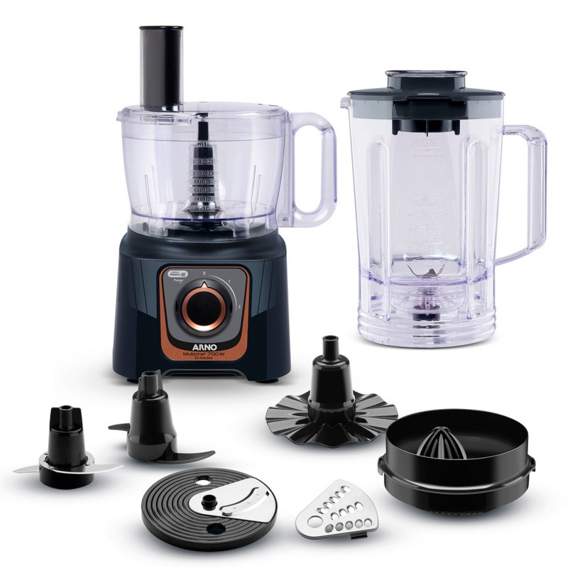 Versátil y potente, combina funciones de picadora, licuadora, batidora, y más en un solo aparato. Ideal para simplificar y acelerar tu cocina.